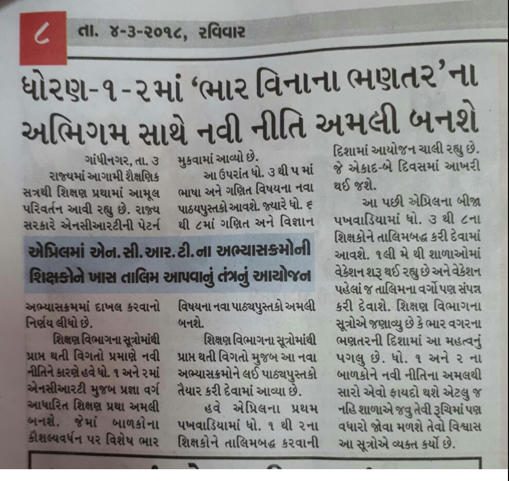 APRIL MA NCERT NA ABHYASKRAM NI TALIM BABAT NEWS REPORT PAR EK NAJAR.