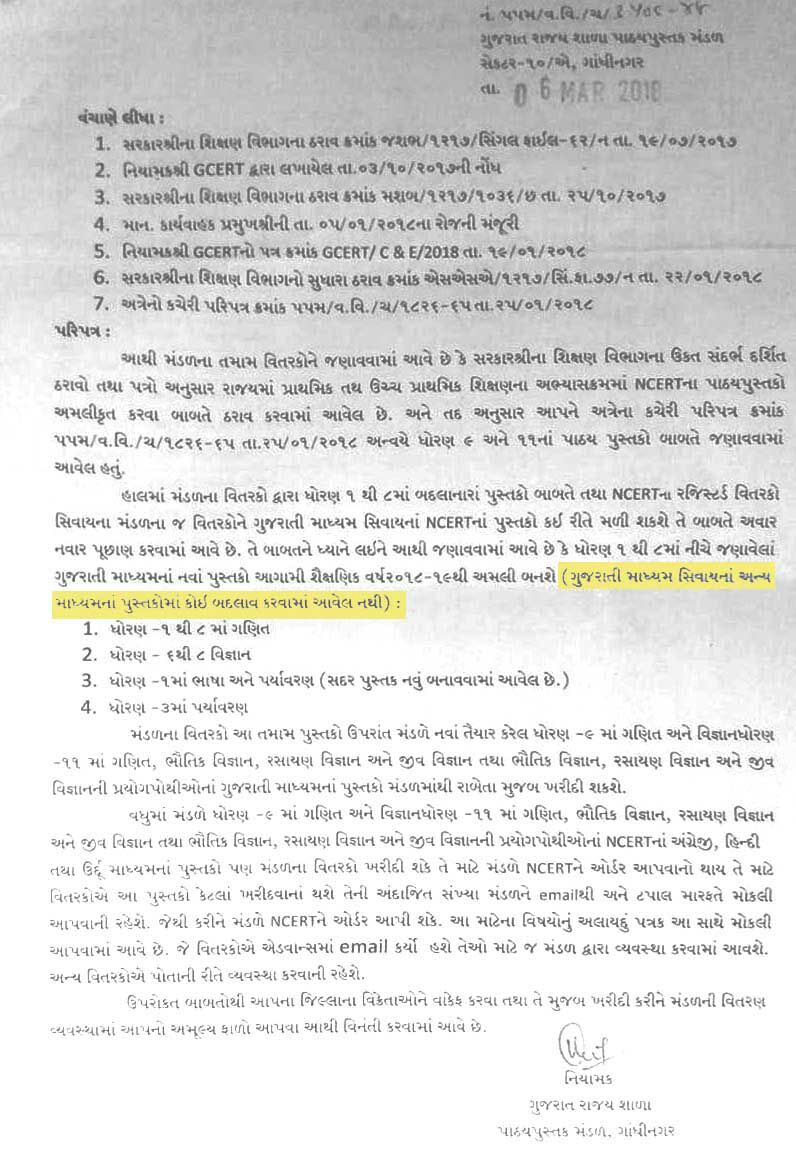 NCERT NA PUSTAKO NU CHHAPKAM RELATED GUJRAT PATHYA PUSTAK MANDAL NO LETTER DATE- 6-3-2018.